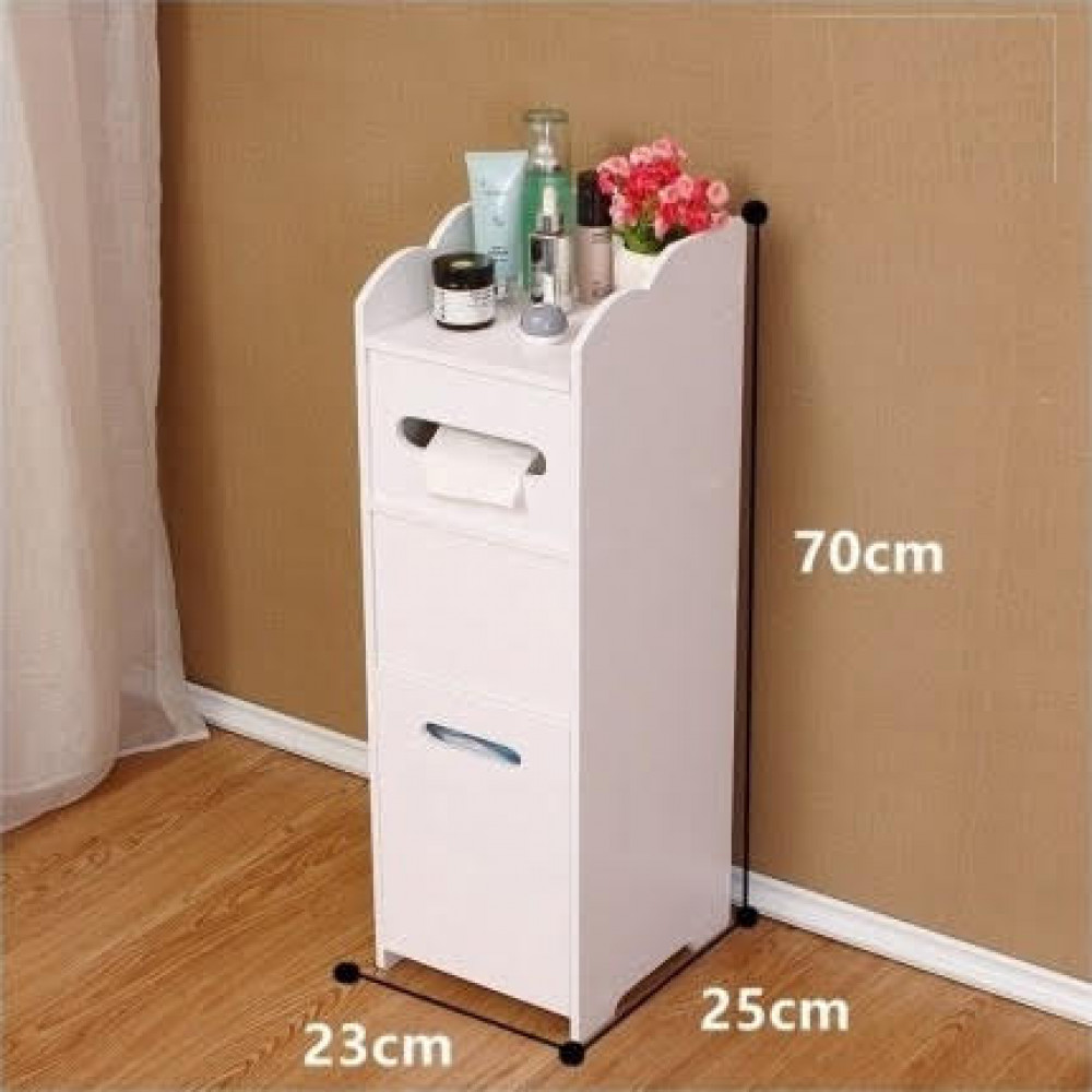 أنيق ، مقاوم للرطوبة ، متين.حجرة واسعة في الأسفل مع ، يمكنك وضع القمامة الخاصة بك ،.مساحة مغلقة في أعلى الخزانة مع رفين صغيرين لتخزين مستحضرات التجميل والصابون.